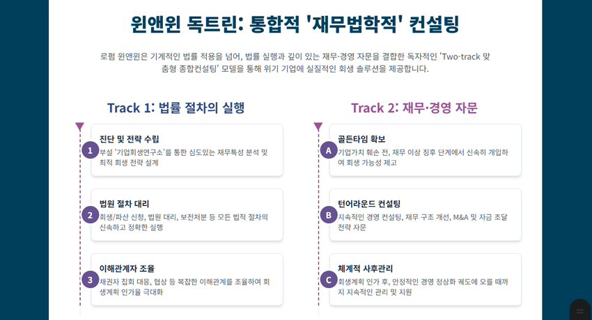 로펌 윈앤윈 기업회생연구소 업무 전반 종합 분석 보고서_<대담 형식> < 딥 다이브>